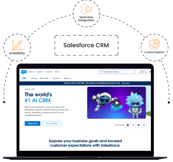 Salesforce CRM is a comprehensive, cloud-based platform with multiple customizable clouds designed for Sales, Service, Marketing, Experience Management, Financial Services, Non-Profits, Healthcare, and more. Its AppExchange feature extends each cloud beyond standard CRM capabilities, enabling the creation of advanced, tailored CRM apps. By providing a single source of truth across all clouds, Salesforce ensures a personalized experience, faster deployment, and quicker time to value. Its cloud-based architecture delivers unmatched scalability, flexibility, and rapid ROI, supported by efficient customer service and high customer satisfaction.