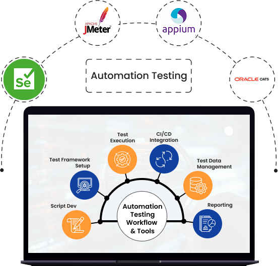 We build robust, scalable, and reusable automation frameworks to streamline test script development, execution, and maintenance. Through expert tools evaluation and recommendation, we ensure optimal coverage, seamless integration, and maximum ROI. Additionally, our test script development and maintenance services deliver reliable, adaptive scripts that evolve with your needs, ensuring continuous and efficient AI-based automation testing.